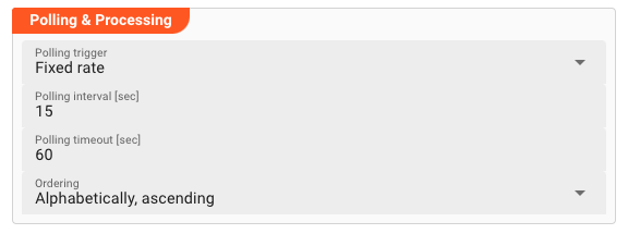 Polling interval [sec]: Enter the interval in seconds in which the configured source should be queried for new objects.
