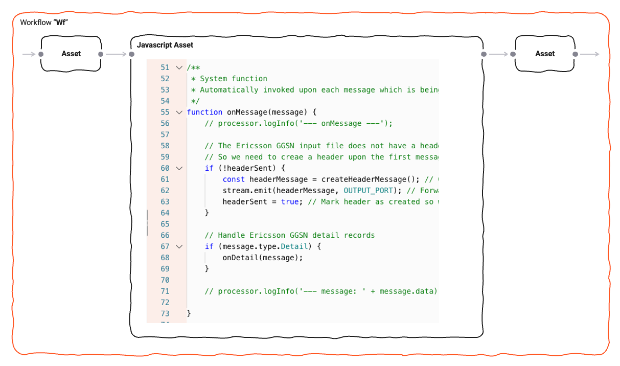 Using the Javascript Asset is not mandatory of course. Many challenges you may be facing can be accomplished using the out-of-the-box Assets whcih layline.io provides without resorting to Javascript. But in many instances, an intermittent scripting processor inserted into a Workflow can go a long way in enabling you to execute logic which would be otherwise hard to implement using pure UI elements.