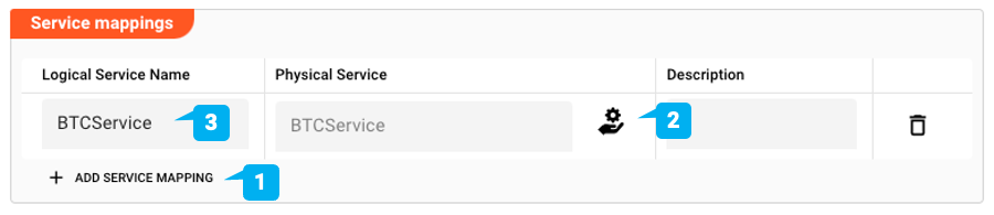 Add Service Mapping(1). - Select the Service which you want to map (2).