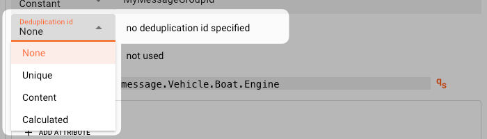 Calculated: Enter a Quickscript term which returns a deduplication id. This is especially useful if the message already contains a specific field which contains a unique id which you also want to use as the deduplication id.