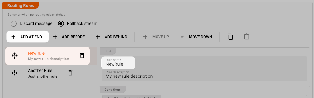 In our example we have created another routing rule MyOtherRoutingRule below the first rule.
