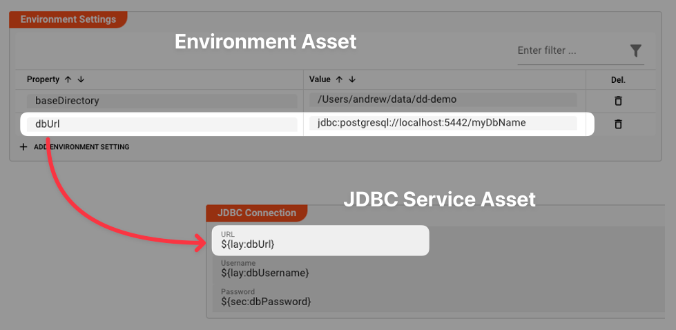 You therefore need to add one or more Environment Assets to the Deployment Configuration, so that it knows what values to use when replacing the environment variables of the sort ${lay:dbUrl}.