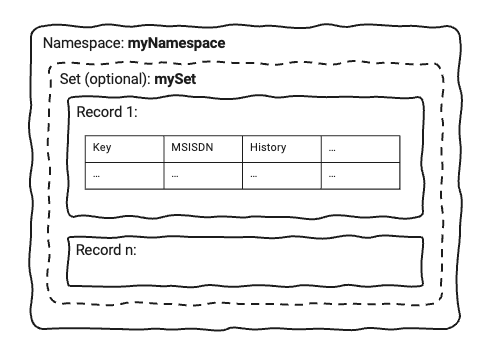 Let's further assume that in Aerospike this is stored in a Namespace/Set/Bins setup like so: