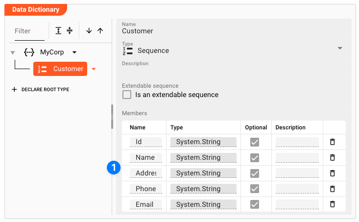 Type(2): SelectSequenceas the element type. In the next step we will create individual members of the sequence. -