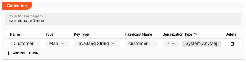 Type: Hazelcast Collection Type. OnlyMapis supported at the moment. -
