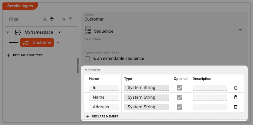 Type(2): SelectSequenceas the element type. In the next step we will create individual members of the sequence. -