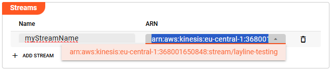 show available data streams within the drop-down list under ARN (Amazon Resource Name).