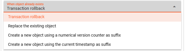 • "Object already exists"-Handling (3): Define your required handling in case the object "in process" already exists.