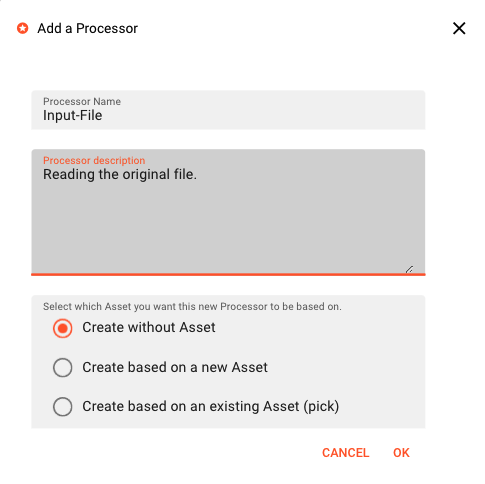 | Input Processors | Input Processor Assets work in conjunction with Sources. They typically combine Sources and Formats plus a some additional. parameters to describe how data is being read. |