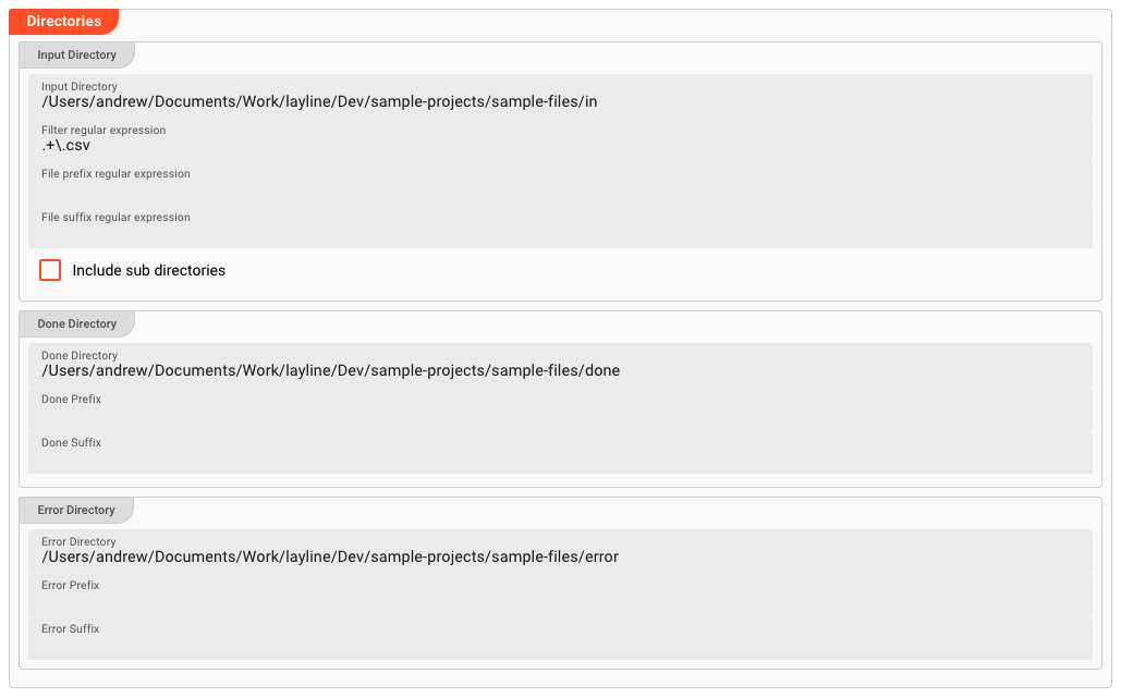 On the child, the overwritten property Input directory is written in black font and has an arrow next to the field.