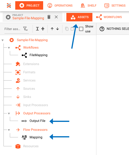 The example we are working is really only to show how layline.io works in principle. So in our example we do a very simple format conversion. For this purpose we are adding a Mapping Asset. To do so we go to Project --> Assets --> Flow Processors and add the Mapping Asset there.