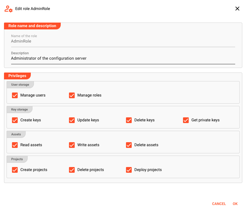 | Key storage | Rights to manage key-pairs on the Configuration Server |