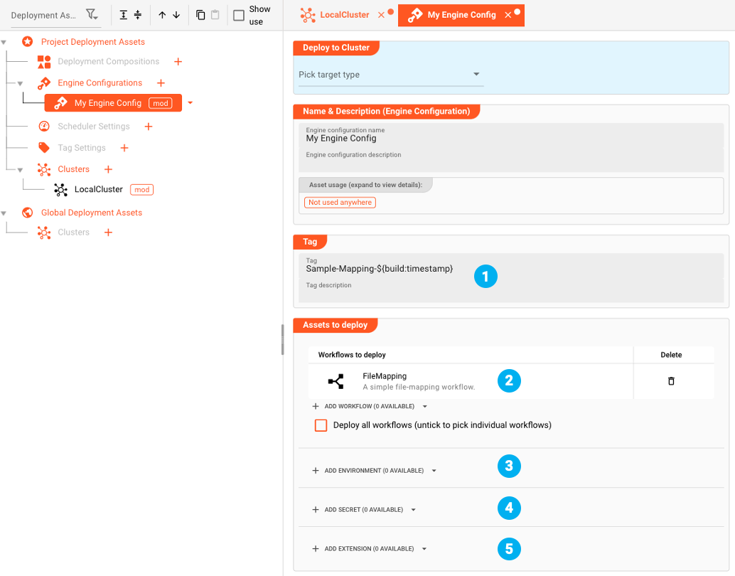 A "Cluster Asset" resembles one or more Reactive Engine endpoints which can actually receive and then activate a Deployment. Therefore before we can deploy, we need to define what these endpoints are.