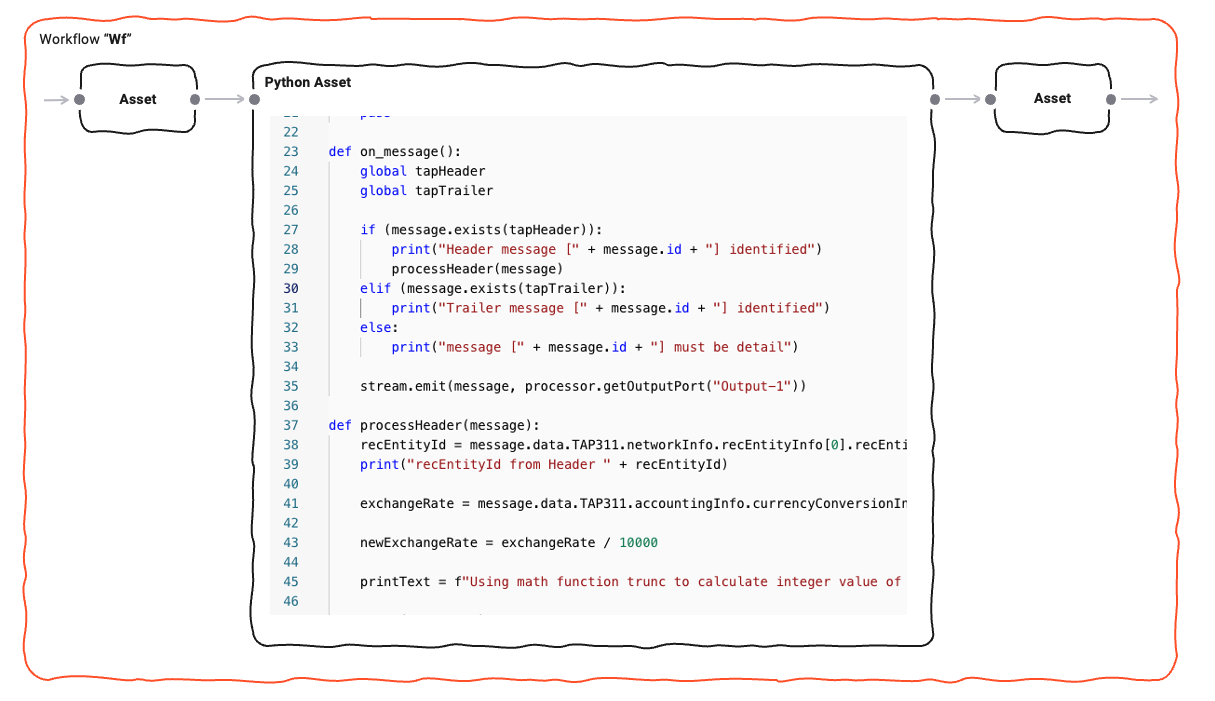 Using the Python Asset is not mandatory of course. Many challenges you may be facing can be accomplished using the out-of-the-box Assets which layline.io provides without resorting to Python. But in many instances, an intermittent scripting processor inserted into a Workflow can go a long way in enabling you to execute logic which would be otherwise hard to implement using pure UI elements.